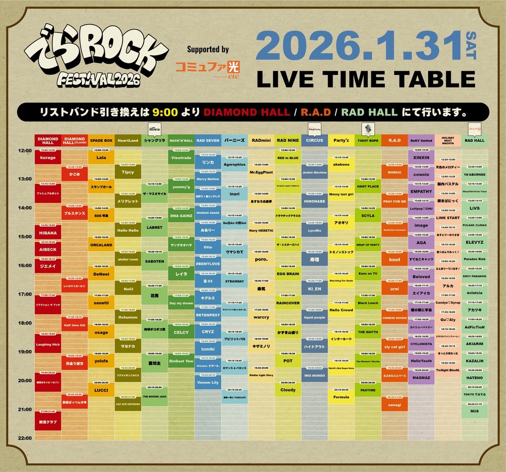 名古屋市内ライブハウス15会場以上にて開催