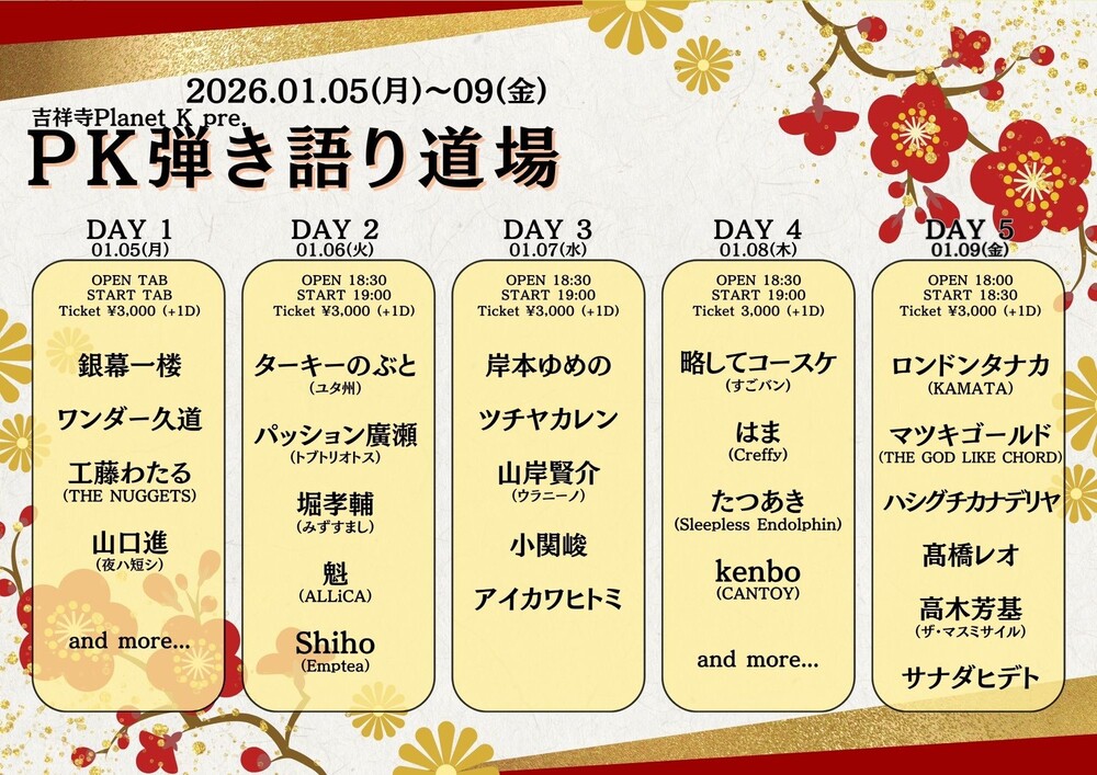 Planet K Presents.「PK弾き語り道場 DAY.1」